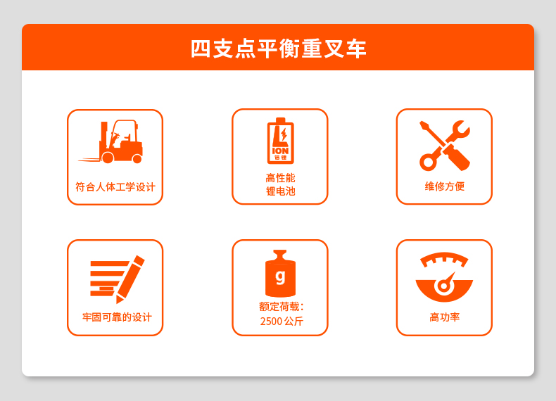 锂電/鉛酸(suān)電池四輪座駕叉(chā)車 産品賣點 符合(hé)人體工學設計 高(gao)☁️性能锂電池 維修(xiū)方便 牢固的設計(ji) 額定載荷:2500公斤 高(gao)功率 锂電/鉛酸電(diàn)池均可選配