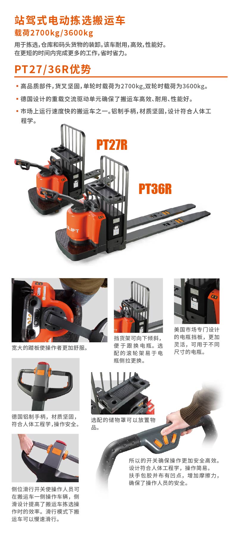 站駕式電(dian)動揀選搬運車 産(chan)品賣點 高品質部(bu)件,貨叉堅固🐕 德國(guo)💜設計的重載交流(liú)驅動單元确保了(le)搬運車、耐用、性能(néng)好 市🌈場上運行速(su)度快到搬運車之(zhi)一 鋁制手柄,材質(zhi)堅固,符合人體工(gōng)程學