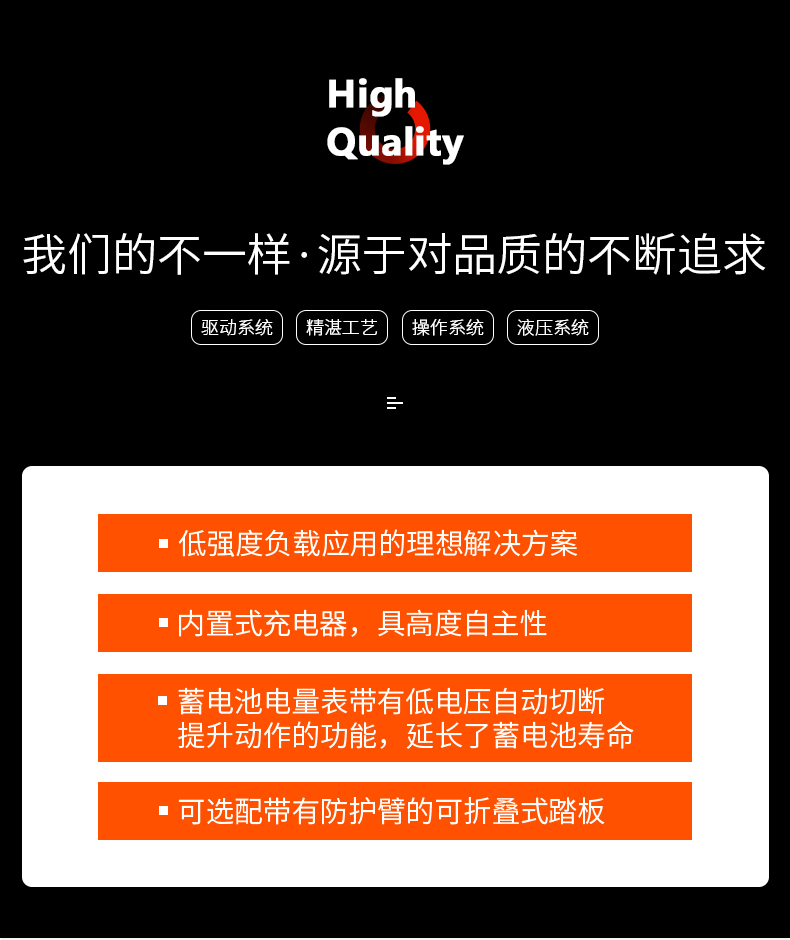 輕巧型(xing)電動搬運車,設(she)計緊湊輕巧 産(chǎn)品賣點 低強☁️度(dù)負載應用的理(li)想解決方案。 内(nèi)置式充電器,具(ju)高度自主性。 低(dī)電壓自動切斷(duan)提升動作的功(gōng)能,延長🛀🏻蓄電池(chi)壽命。 附加的穩(wen)定輪了車輛操(cao)作的穩定性。