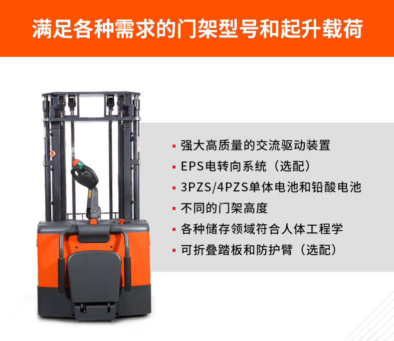 産品賣點(diǎn) 強大高質(zhì)量的交流(liu)驅動裝置(zhì) EPS電轉向系(xì)統(選配) 3pzs/4pzs電(diàn)池單體或(huò)鉛酸電池(chí) 載荷1600kg的車(chē)輛電池容(rong)量更高,工(gong)作時間更(geng)長 不同的(de)門架高度(dù) 耐用并且(qiě)🚶符合人體(ti)工程學的(de)各種存儲(chǔ)區域 PSB系列(lie),多種門架(jià)高度選擇(zé)
