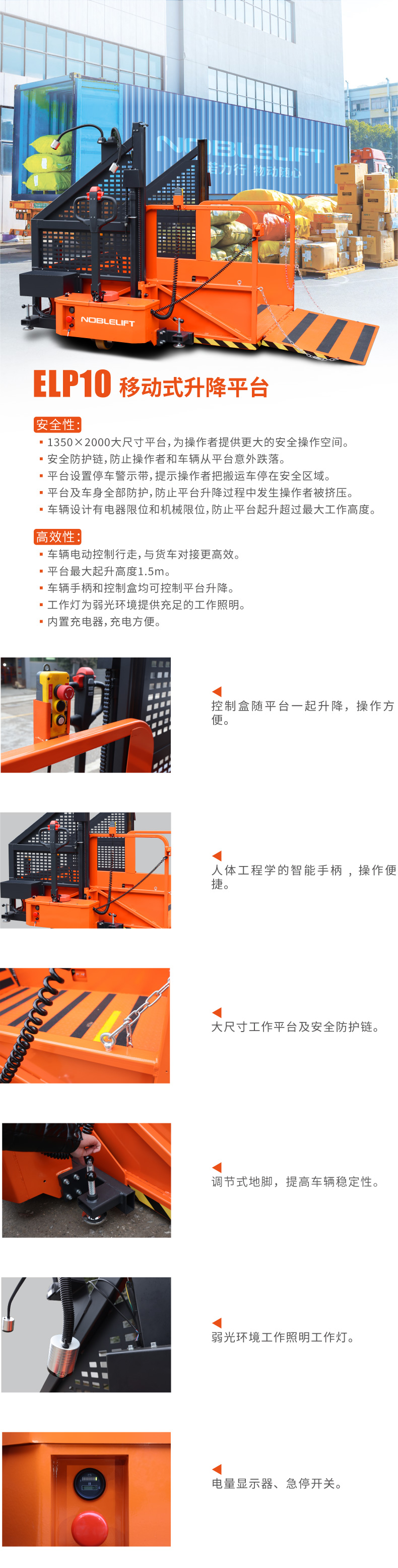 産品賣點(dian) 車輛電動(dong)控制行走(zou),與貨車對(duì)接 工作燈(deng)爲🧡弱光環(huan)境提供充(chong)足的工作(zuò)照明 調節(jie)式地腳,提(ti)高車輛穩(wěn)定性 控制(zhi)盒随平台(tái)一起操作(zuò)方便 人體(ti)工程學智(zhi)能手柄 大(dà)尺寸工作(zuò)平台及安(an)全防護鏈(liàn)